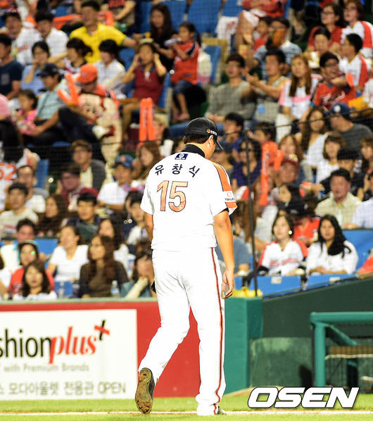 28일 대전야구장에서 벌어진 '2014 한국 야쿠르트세븐 프로야구' 한화 이글스와 넥센 히어로즈의 경기, 5회초 무사 1,2루 강정호에게 역전 스리런 홈런을 맞은 유창식이 마운드를 내려가고 있다.