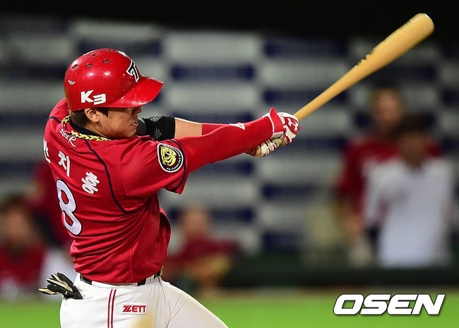 7회초 KIA 공격 1사 1루 상황 안치홍이 좌중간 투런포를 날리고 있다.