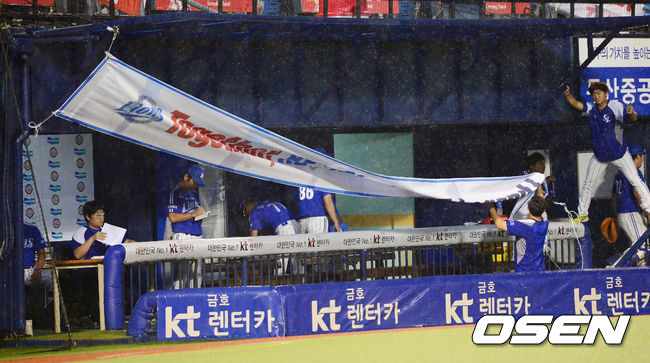 29일 오후 서울 잠실구장에서 열린 '2014 한국야쿠르트 세븐 프로야구' 두산 베어스와 삼성 라이온즈의 경기 종료 후 삼성 구단 관계자들이 철수를 하고 있다.