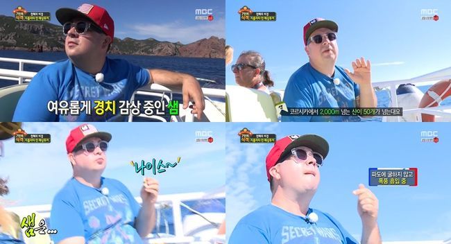 샘 해밍턴은 29일 오후 방송된 MBC '7인의 식객'에서 지롤라타 만 해상투어를 펼치면서 거친 파도에도 음식을 먹어 눈길을 끌었다.