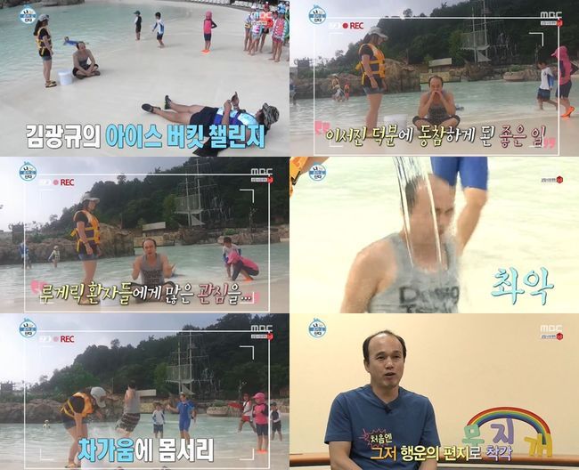 배우 김광규가 워터파크에서 아이스버킷 챌린지에 동참했다.