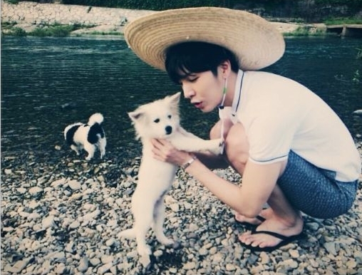 공개된 사진 속 노민우는 밀짚모자를 쓰고 편한 복장을 하고 있다. 특히 강아지를 바라보며 깜찍한 표정을 짓고 있는 노민우에 비해, 강아지는 이를 외면하고 있어 웃음을 자아냈다.