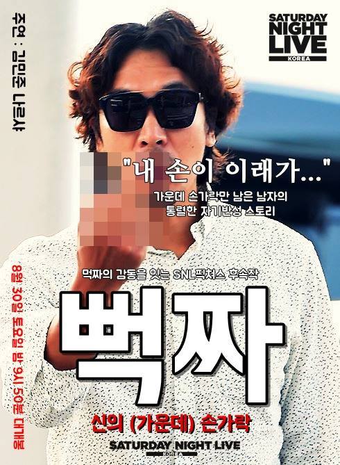 한편 'SNL 코리아'는 미국에서 38년간 인기리에 방송된 라이브 TV쇼 'SNL(Saturday Night Live)'의 오리지널 한국버전. 지난 3월 1일 다섯번째 시즌을 시작한 'SNL코리아'는 박성웅, 박지윤, 정준하, 정성화, DJ DOC, 주병진, 조성모, 신해철, 문희준 등이 크루로 나서 활약했다. 내달 6일에는 조영남이 호스트 출연한다.