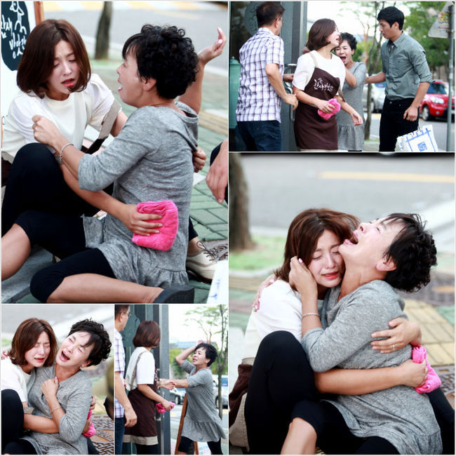 박세영과 이미영의 ‘길거리 오열’ 촬영은 최근 경기도 부천에 위치한 한 떡집 앞에서 진행됐다. 촬영장에 도착한 박세영과 이미영은 장면의 특성상 말수를 줄이며 감정에 집중했던 터. 홍성창 감독의 ‘큐’사인이 떨어지자마자 이미영은 목에 핏줄이 다 드러나도록 서럽게 통곡해 ‘관록의 연기자’다운 포스를 뿜어냈다. 순식간에 엄청난 감정 몰입을 한 이미영이 때리기 시작하자 박세영 또한 이내 이미영과 호흡을 맞추며 눈물을 뚝뚝 떨궈냈던 것. 두 사람의 몰입도 높은 연기 덕분에 더욱 완벽한 장면이 만들어졌다. 특히 두 사람은 ‘컷’소리가 떨어진 후에도 감정에서 빠져나오지 못한 채 초점이 없는 눈빛과 멍한 표정으로 그 자리에 털썩 주저앉아 제작진을 안타깝게 했다.