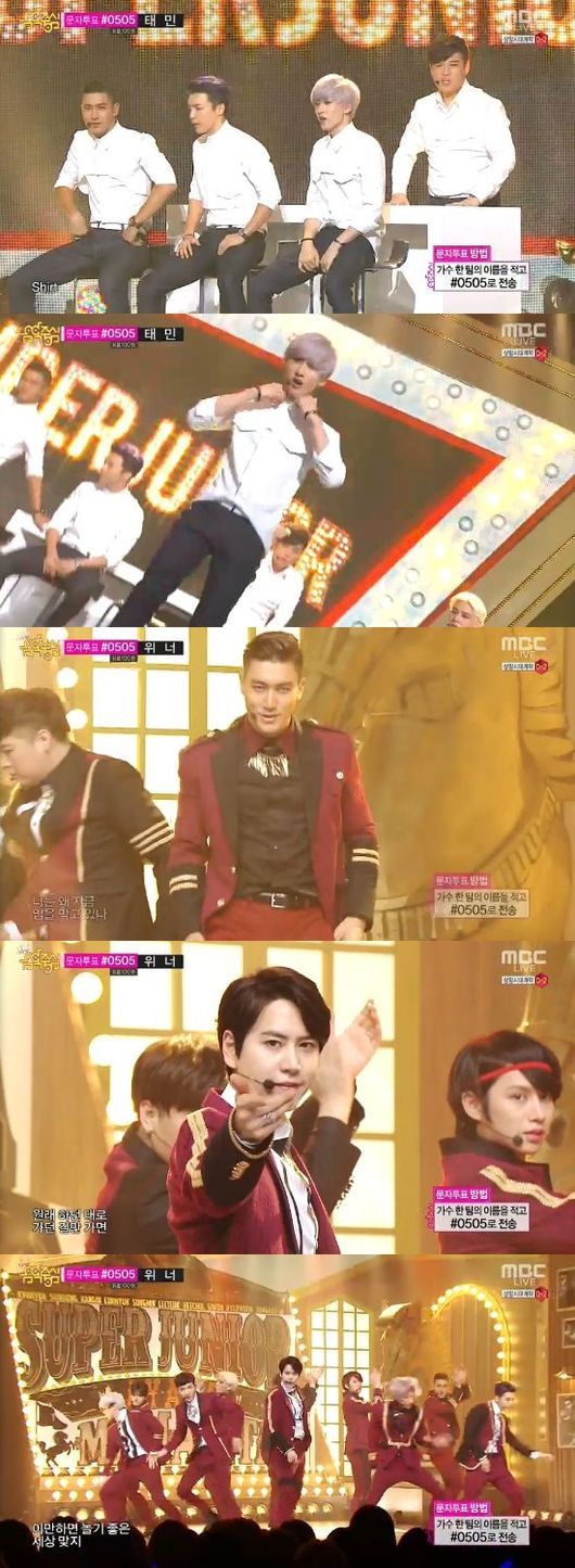 슈퍼주니어는 30일 오후 방송된 MBC '쇼 음악중심'에서 신곡 '셔츠', '마마시타'를 선보였다.