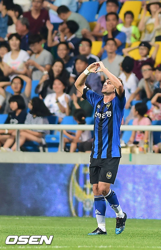 크 경기, '현대오일뱅크 K리그 클래식 2014' 23라운드 경기, 전반 인천 이보가 패널티킥에 성공하며 선제골을 넣고 기뻐하고 있다.