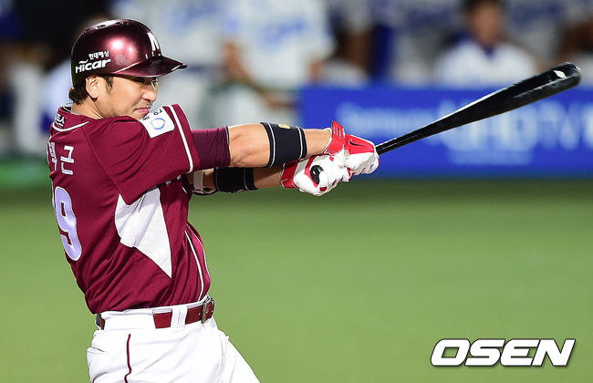 5회초 넥센 공격 2사 2루 상황 이택근이 적시 1타점 우전안타를 날리고 있다.