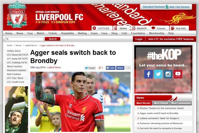 리버풀은 30일(이하 한국시간) 공식 홈페이지를 통해 "리버풀이 아게르의 브뢴비 완전이적에 합의했다"고 발표했다. 리버풀 에코 등 현지 언론은 리버풀이 친정팀으로 돌아가는 아게르 대신 약 300만 파운드(약 50억 원)의 이적료를 받게될 것으로 내다봤다.