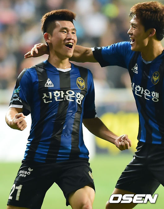 30일 오후 인천축구전용경기장에서 열린 열린 인천 유나이티드와 부산 아이파크 경기, '현대오일뱅크 K리그 클래식 2014' 23라운드 경기, 후반 인천 김도혁이 크로스를 그대로 헤딩슛으로 연결한 후 기뻐하고 있다.