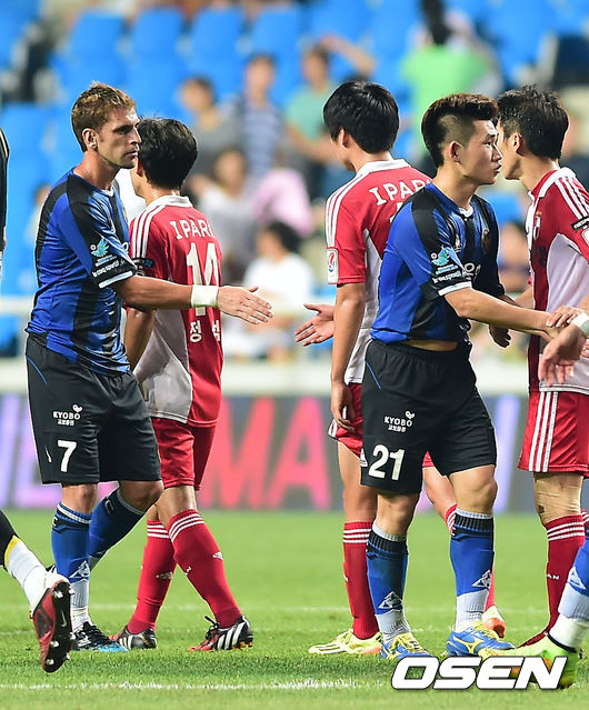 김봉길 감독이 이끄는 인천은 30일 인천축구전용경기장에서 열린 현대오일뱅크 K리그 클래식 2014 23라운드 부산과 경기서 3-0 완승을 거뒀다. 이날 승리로 인천은 5승 9무 9패(승점 24)로 8위를 지키며 최근 홈 6경기 연속 무패(3승 3무)를 기록했다. 반면 부산은 4승 7무 12패(승점 19)에 머무르며 강등권 탈출에 실패했다.