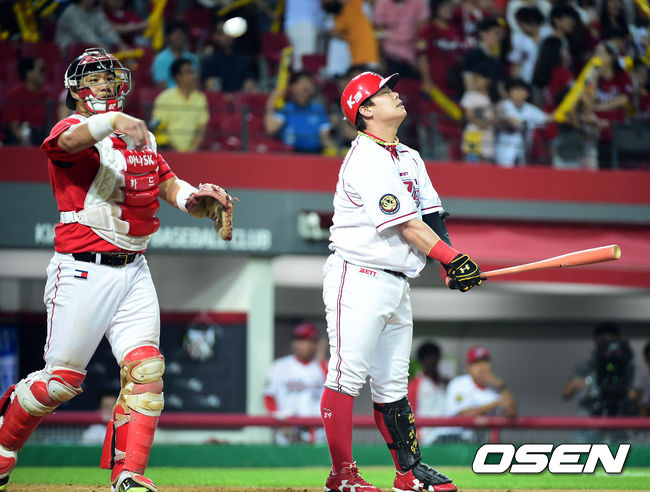 8회말 2사 1,3루 태타로 들어선 나지완이 삼진을 당하고 아쉬워 하고 있다./spjj@osen.co.kr