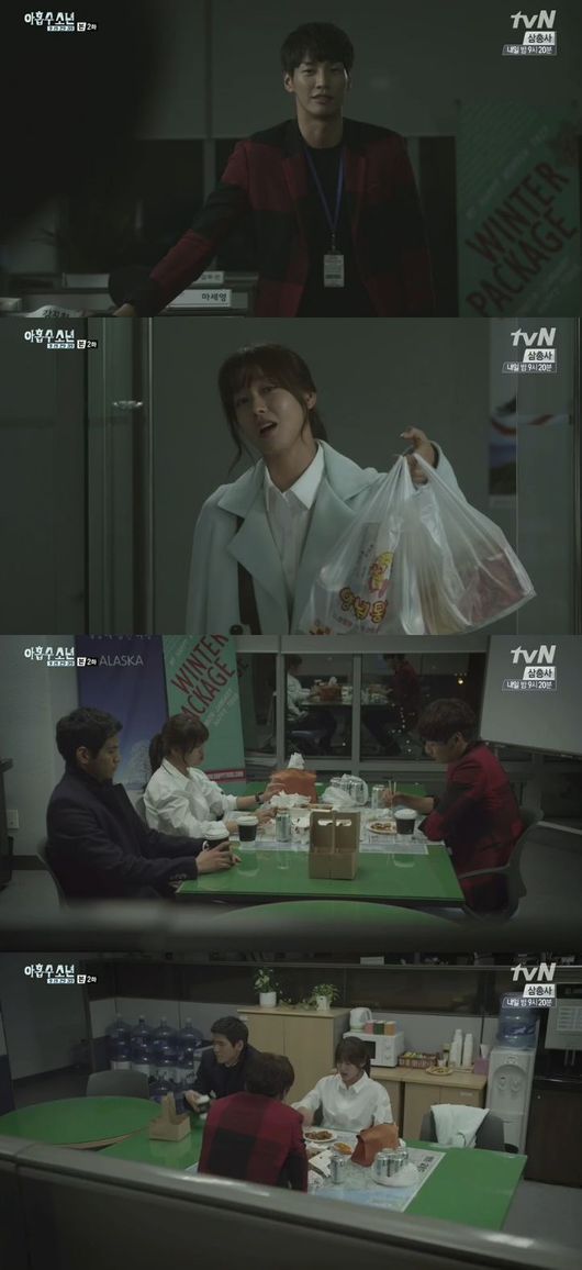29일 오후 방송된 케이블채널 tvN 금토드라마 '아홉수소년'(극본 박유미, 연출 유학찬)에서는 야근을 하는 강진구(김영광 분)을 위해 야식을 배달해주는 마세영(경수진 분)의 모습이 그려졌다.