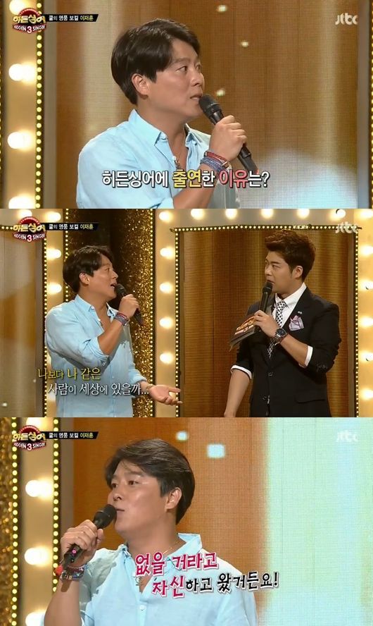 이재훈은 "내가 웬만한 모든 방송을 봤다"며 "내가 '히든싱어3'에 출연한 이유가 나보다 나 같은 사람이 세상에 있을까라고 했다. 똑같은 사람이 없을 거라고 자신하고 왔다"고 밝혔다.