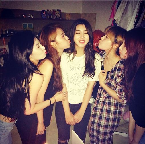 [OSEN=양지선 인턴기자] 걸그룹 포미닛 멤버들이 막내 소현의 생일을 기념해 뽀뽀 인증샷을 공개했다.