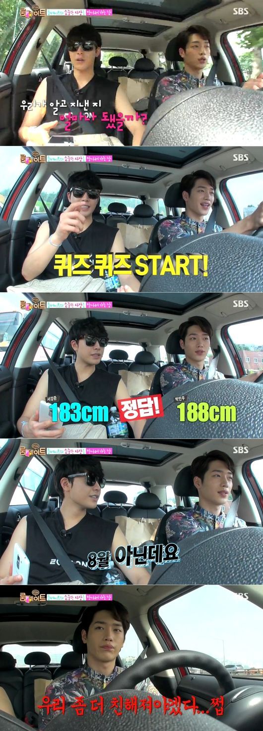 박민우와 서강준은 31일 오후 방송된 SBS 예능프로그램 ‘일요일이 좋다-룸메이트’에서 궁합데이를 맞아 함께 수상 레포츠를 즐기러 떠났다. 차 안에서 두 사람은 “만난 지 120일 됐다”며, “서로를 알아보는 퀴즈를 해보자”고 말했다.