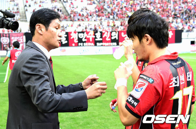 경기시작전 FC 서울 최용수 감독이 마지막 작전 지시를 하고 있다.