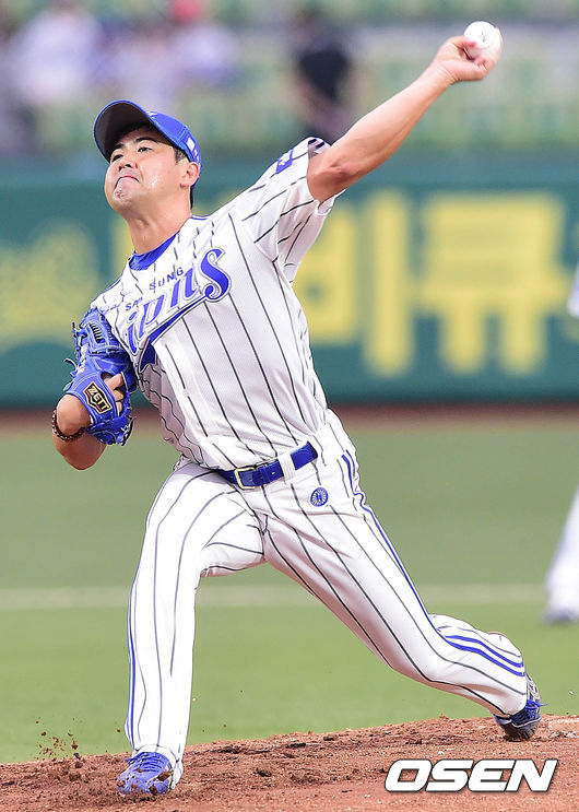 삼성 선발 장원삼이 힘차게 공을 뿌리고 있다.