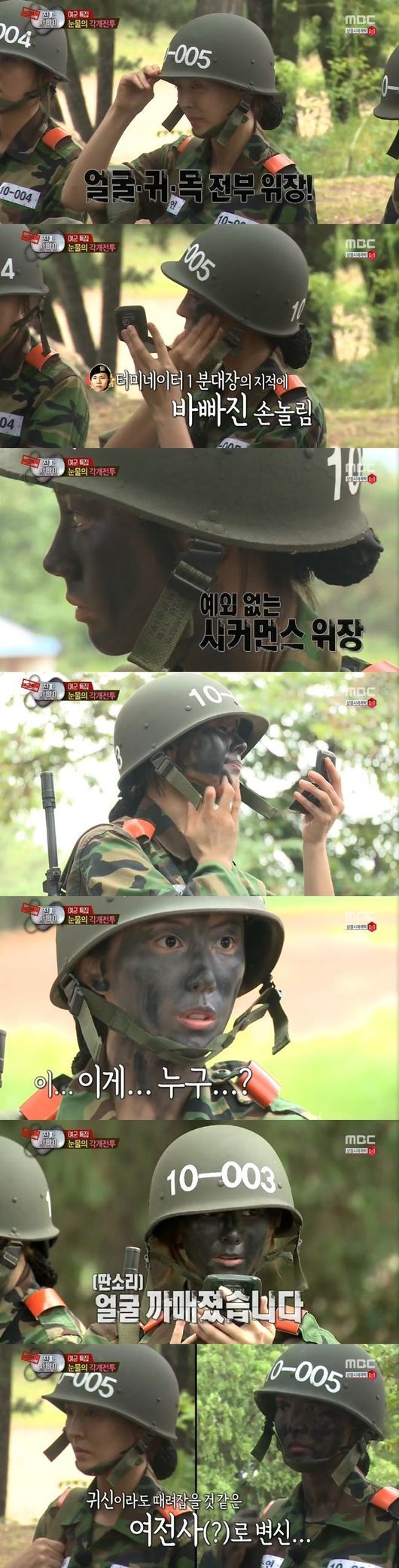 이날 마녀 소대장은 위장 방법을 알려준 후 3분 만에 얼굴, 손목, 팔 등에 크림을 바르라고 명령했다. 사회에서는 아이돌 그룹, 배우, 가수 등 미모를 자랑하는 이들이었지만, 위장크림을 바른 후에는 영락없이 '시커먼스'의 모습으로 변해 웃음을 줬다.
