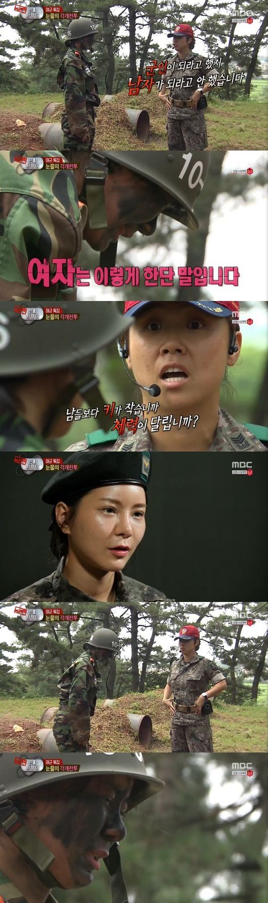 31일 오후 방송된 MBC 예능프로그램 '일밤-진짜사나이'(이하 '진짜사나이')에서는 맹승지를 주시하던 소대장이 끝내 폭발해 맹승지에게 얼차려를 주는 모습이 그려졌다.