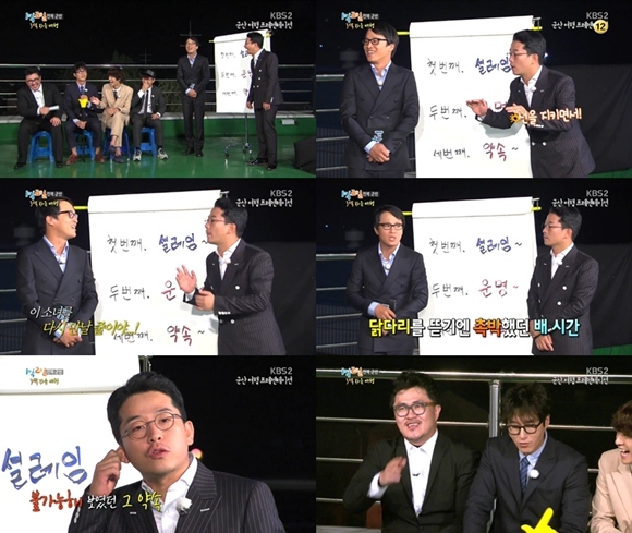 특히 김준호와 차태현 팀은 선유도 여행 상품을 설명하면서 '설렘, 운명, 약속' 등 세 가지 주제를 정하고 그들의 경험을 설명해 웃음을 주기도 했다. 하지만 전문가들에게는 냉정한 평가를 받으면서 꼴찌가 됐다.