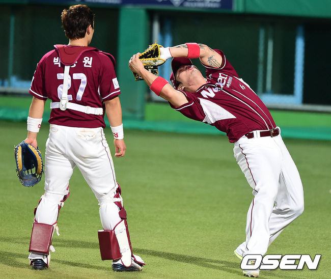 4회말 삼성 공격 1사 1루 상황 조동찬의 뜬공 타구를 넥센 1루수 박병호가 잡아내고 있다.