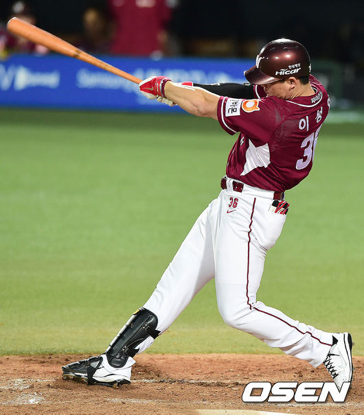 5회초 넥센 공격 선두타자로 나선 이성열이 우월 솔로포를 날리고 있다.