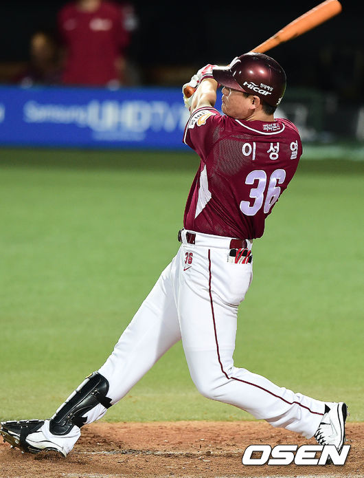 5회초 넥센 공격 선두타자로 나선 이성열이 우월 솔로포를 날리고 있다.