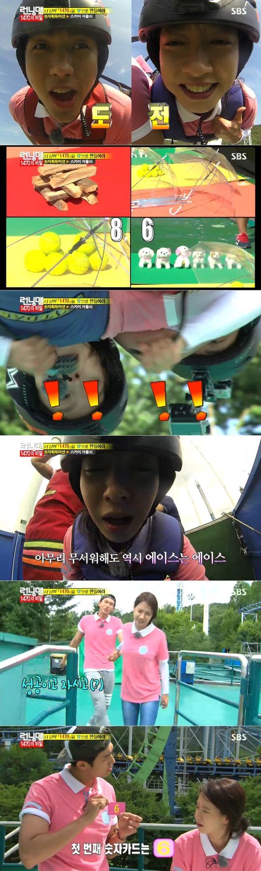 송지효와 임슬옹은 31일 오후 방송된 SBS 예능프로그램 ‘일요일이 좋다-런닝맨’에서 ‘스카이 엑스’를 타며 자물쇠를 푸는 미션을 받았다. 마치 번지점프와 같은 이 놀이기구를 타며 두 사람은 고도의 집중력을 발휘해 멤버 중 처음으로 미션을 통과했다.