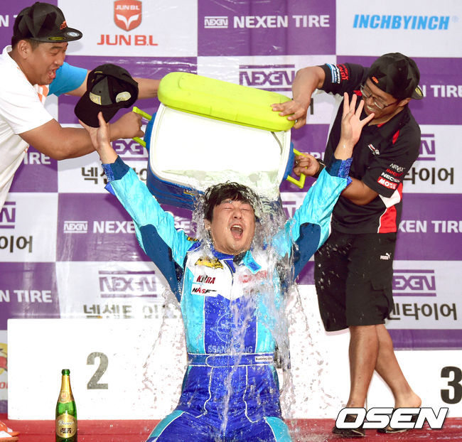 엔페라 R300 이선호가 동료들로 부터 시원한 물세례를 받고 있다./spjj@osen.co.kr