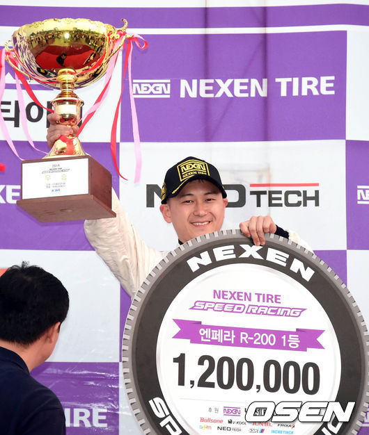 엔페라 R200 우승자 박용진이 우승 트로피를 높이 치켜들고 있다./spjj@osen.co.kr