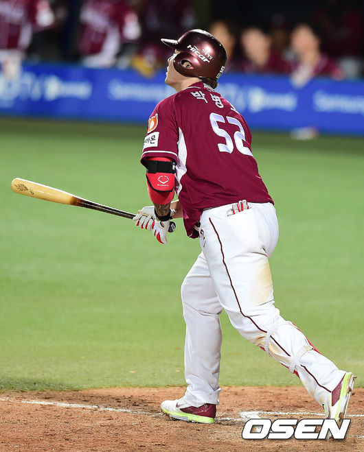 6회초 넥센 공격 1사 주자없는 상황 박병호가 우월 솔로포를 날리고 타구를 바라보고 있다.