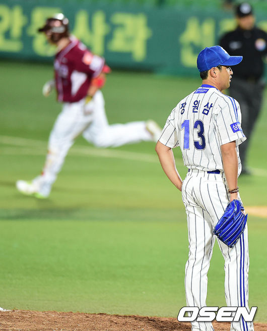 6회초 넥센 공격 1사 주자없는 상황 박병호에게 우월 솔로포를 허용한 삼성 선발 장원삼이 아쉬워하고 있다.