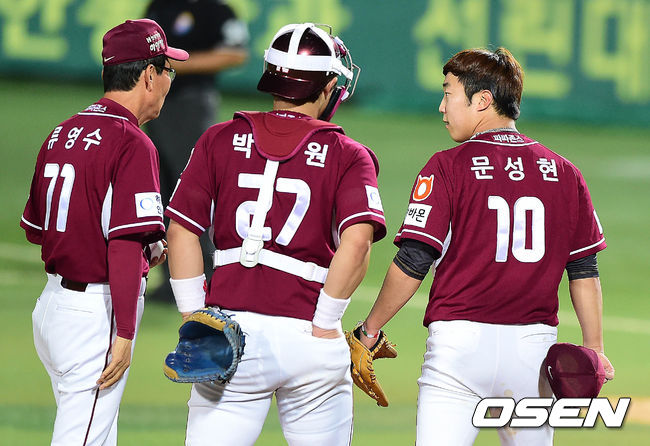 7회말 삼성 공격 2사 1루 상황 넥센 선발 문성현이 마운드를 내려가고 있다.