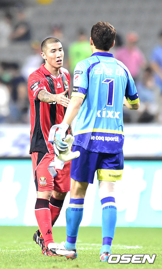 경기종료후 FC서울 차두리와 김용대가 악수를 나누고 있다./greenfield@osen.co.kr