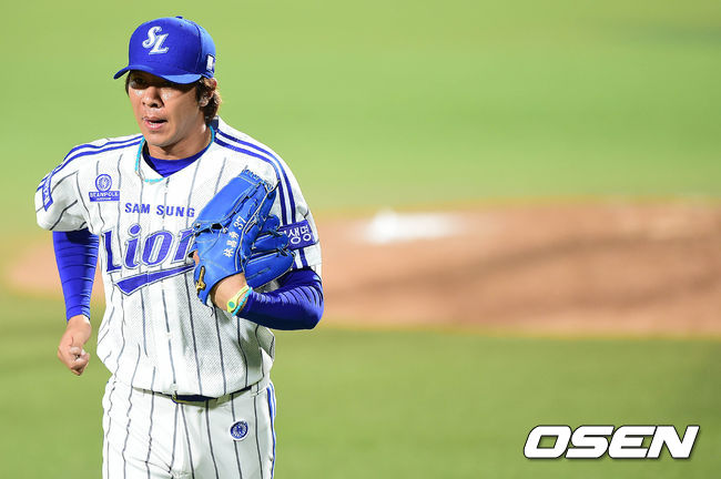 9회초 넥센 공격 2사 만루 상황에서 삼성 투수 임창용이 이택근에게 2타점 중전안타를 허용한 뒤 마운드를 내려가고 있다.