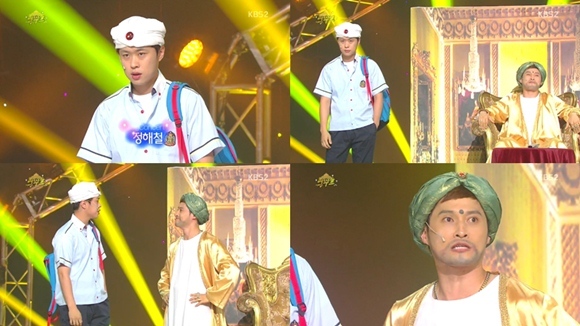 오나미와 김민경에 이어 등장한 정해철은 아버지 송준근에게 학교 장기자랑 사회자로 주성치 대신 노홍철을 섭회해달라고 졸랐다. 이에 송준근은 "네가 거지야"라고 버럭 소리를 질렀다.