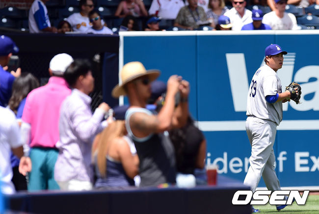 1일(이하 한국시간) 미국 캘리포니아주 샌디에이고 펫코 파크에서 열릴 '2014 메이저리그' 샌디에이고 파드리스와 LA 다저스의 경기에 앞서 다저스 류현진이 훈련을 하고 있다.