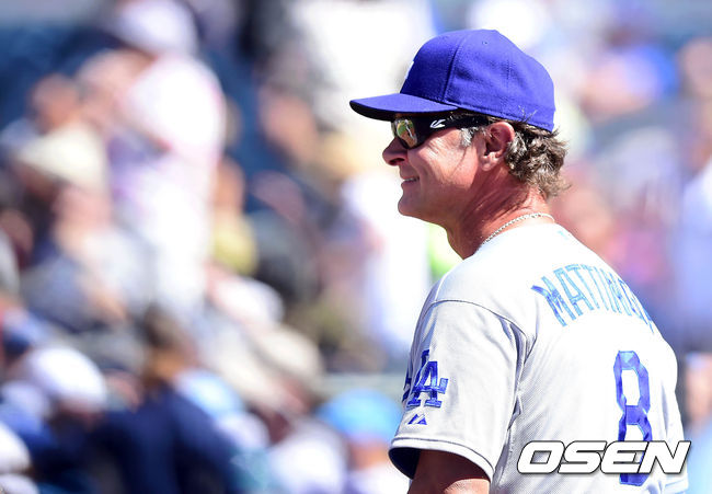1일(이하 한국시간) 미국 캘리포니아주 샌디에이고 펫코 파크에서 열린 '2014 메이저리그' 샌디에이고 파드리스와 LA 다저스의 경기, 7회말 다저스 매팅리 감독이 환하게 웃고 있다.