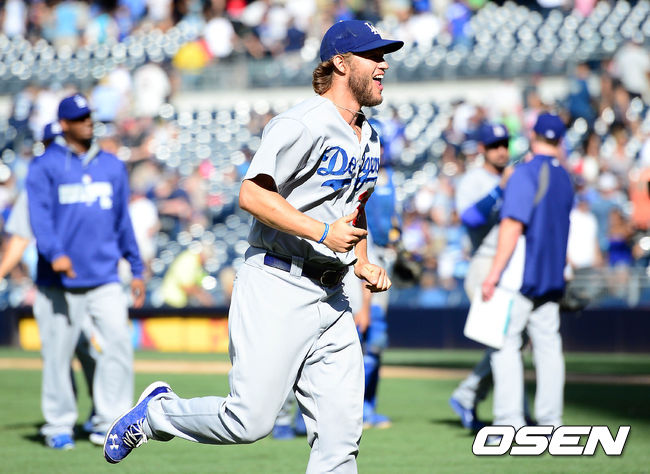 경기 종료 후 다저스 커쇼가 환하게 웃고 있다. /jpnews@osen.co.kr