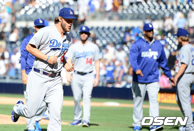경기 종료 후 다저스 커쇼가 환호하고 있다. /jpnews@osen.co.kr