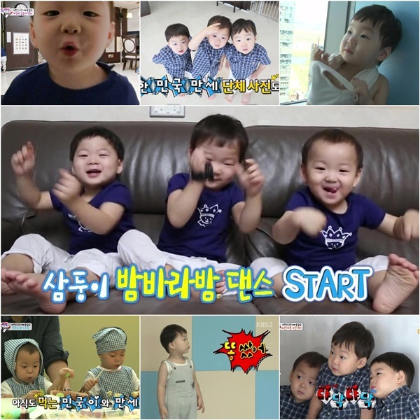 특히 '슈퍼맨이 돌아왔다'의 삼둥이가 큰 사랑을 얻고 있다. 이날 삼둥이는 앙증맞은 ‘바라밤 댄스’를 선보이며 치명적인 매력을 발산했다. ‘뽀로로’의 주제곡인 ‘바라밤’에 맞춰 해맑은 미소와 함께 온몸을 들썩거리며 춤을 추는 삼둥이의 천진난만한 모습은 시청자들의 눈길을 단번에 사로잡았다.