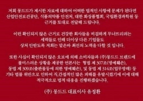 세트리모늄브로마이드 물티슈에 유독물질이 포함됐다는 논란이 일었다. 그러나 해당 업체 측에서는 유독 물질이 아니라 안정성을 확인 받았다고 강하게 반박하며 법적 대응을 예고했다.