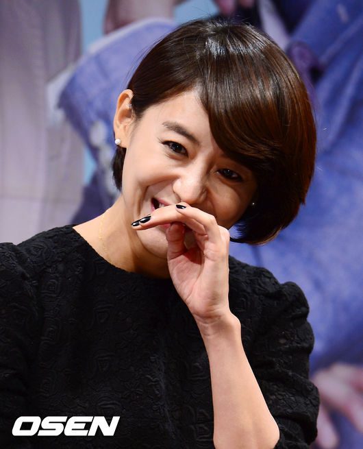 윤정희가 미소짓고 있다.