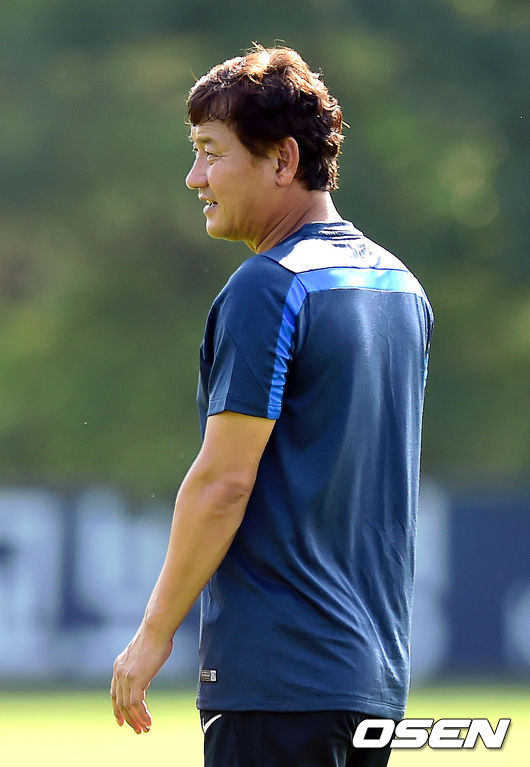 이광종 감독이 선수들의 훈련을 지켜보고 있다.