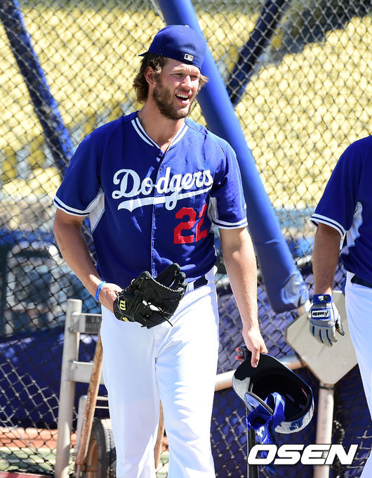 경기에 앞서 다저스 커쇼가 타격 훈련을 마치고 이동하고 있다.