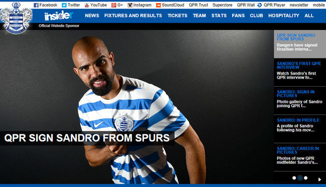 퀸스 파크 레인저스 공식 홈페이지 캡처.