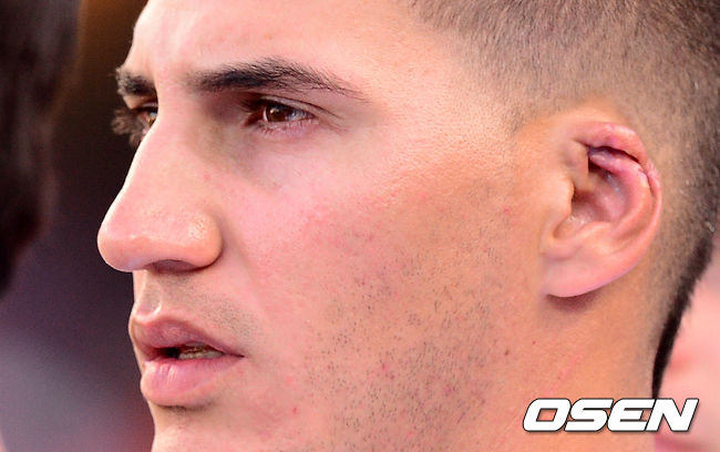 경기에 앞서 다저스 게레로가 경기를 준비하고 있다. 게레로는 지난 5월 21일 마이너리그 트리프A 앨버커키 소속으로 유타주 솔트레이크에서 경기를 갖던 중 베테랑 포수 미구엘 올리보와 벌어진 싸움에서 귀를 물어 뜯겼다. 게레로는 이로 인해 플라스틱 보형 수술을 받아야 했다. 올리보는 방출.