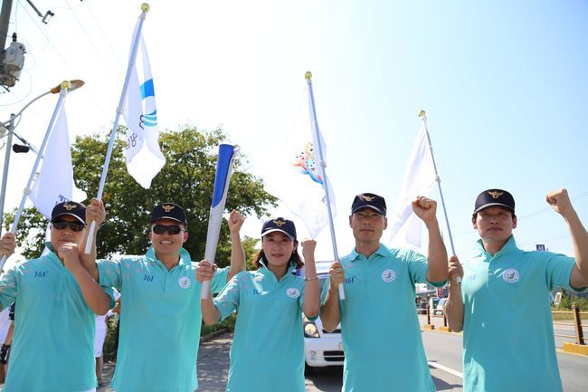 이날 오후 5시 대전에 도착한 성화는 둔산동 방죽네거리 하이마트 앞에서 대전시청 남문광장까지 1.4km, 13개 구간에서 65명의 주자가 봉송했다. 안치식은 오후 5시 40분 시청남문광장에서 진행됐다.