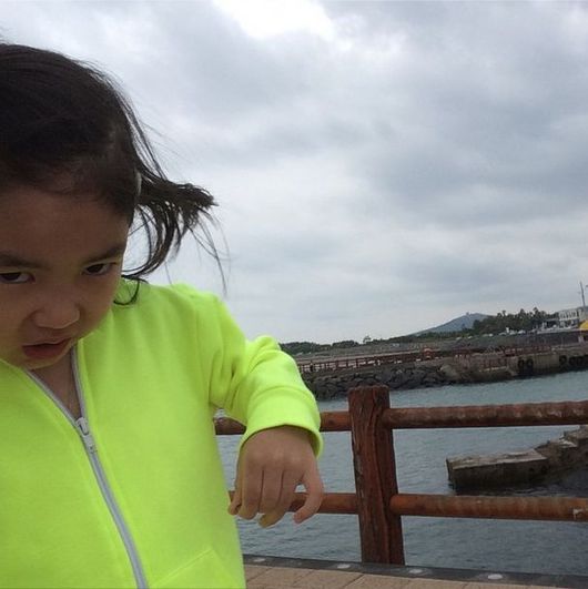공개된 사진 속에는 바다를 배경으로 익살스러운 표정을 짓고 있는 하루의 모습이 담겨있다. 바다괴물을 흉내내는 듯 잔뜩 인상을 쓰고 있는 하루의 표정이 귀여움을 자아낸다.