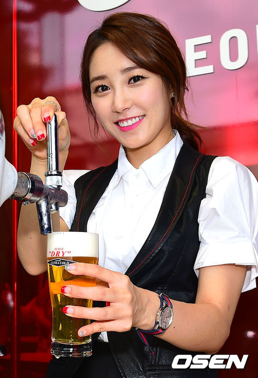 2일 오후 서울 서초구 부티크모나코 빌딩에서 진행된 ‘아사히 수퍼드라이 엑스트라 콜드 바’ 4만잔 돌파 기념 아나운서 최희가 포즈를 취하고 있다.